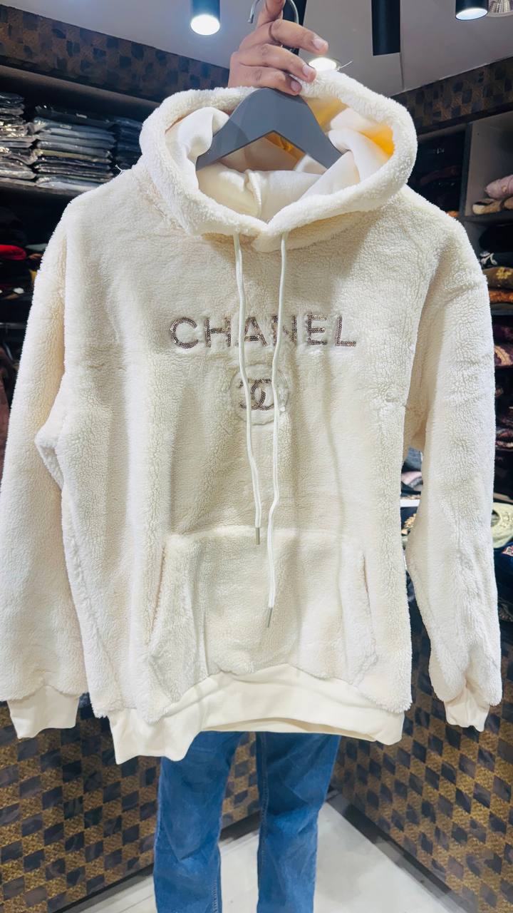 Alabaster is a clean ivory-white woolen hoodie crafted for minimal yet elevated winter wear. The embossed Chanel logo blends seamlessly into the fabric, giving a refined monochrome look. Soft on the skin and warm in feel, this hoodie balances simplicity with quiet luxury.