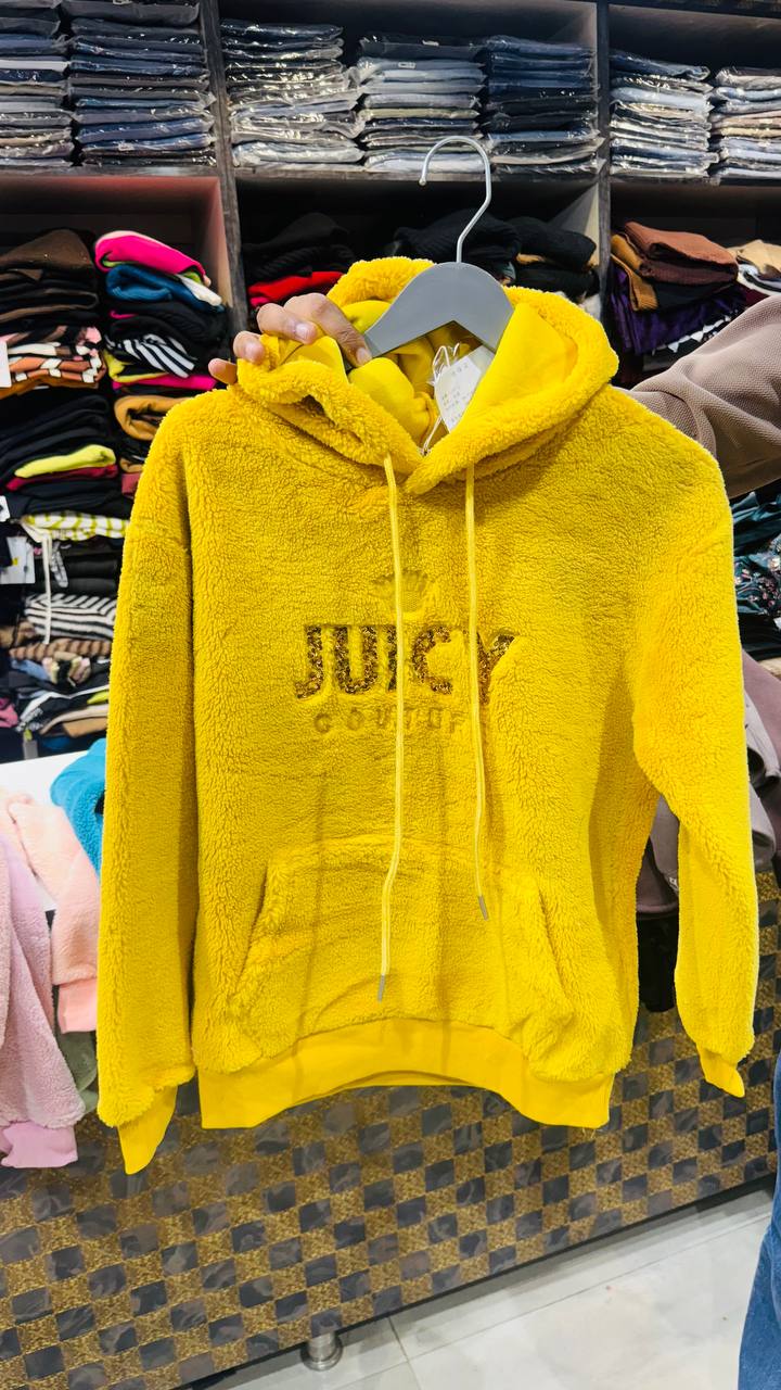 Aurea is a bright soft-yellow woolen hoodie that brings warmth and energy to winter styling. The textured fabric is complemented by a subtle Juicy logo detail, creating a cheerful yet balanced look. Ideal for casual days when comfort meets standout colour.