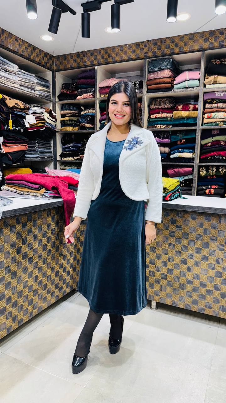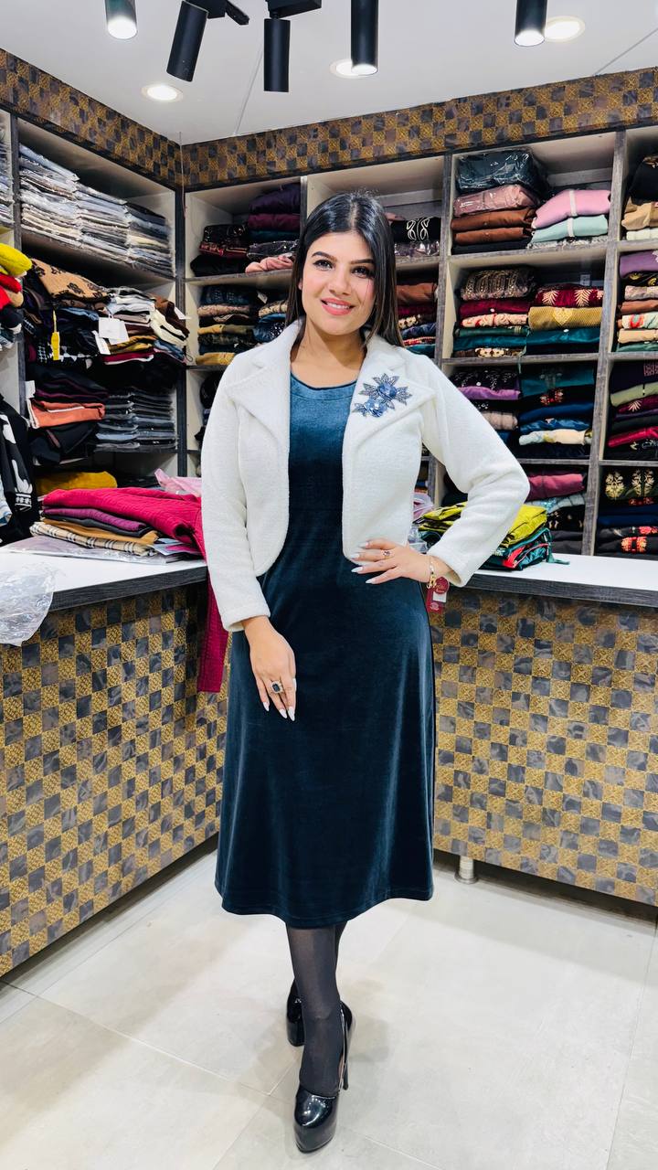 β¨ Design: A-line Velvet Dress β’ Minimalist Cut β’ Floral Brooch Jacket