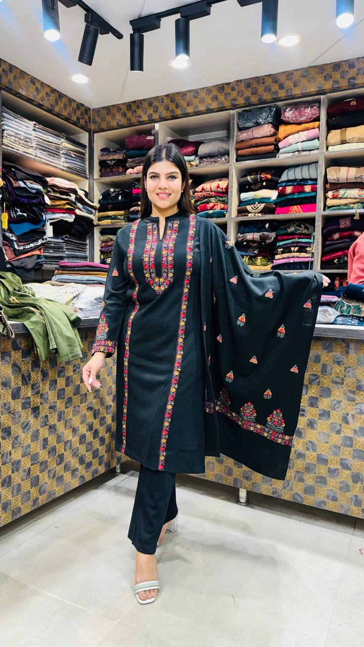 Ebonyra is a rich Jet Black 3-piece winter set crafted from Premium Knitting fabric, designed to be soft, warm, and comfortable for the season.