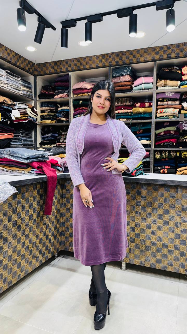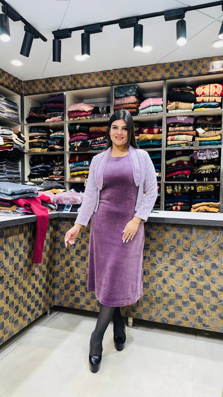 Paired with a light knitted shrug, it becomes the perfect winter outfit β€” warm, feminine, and classy for both casual outings and evening styling.