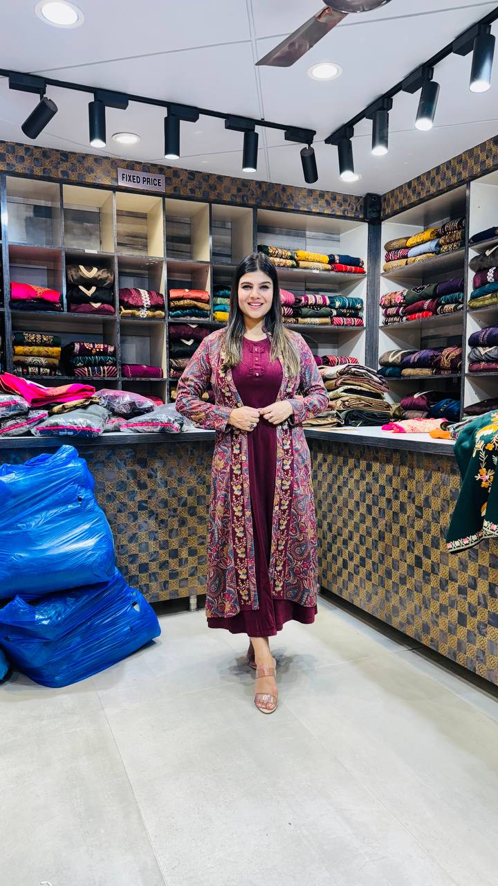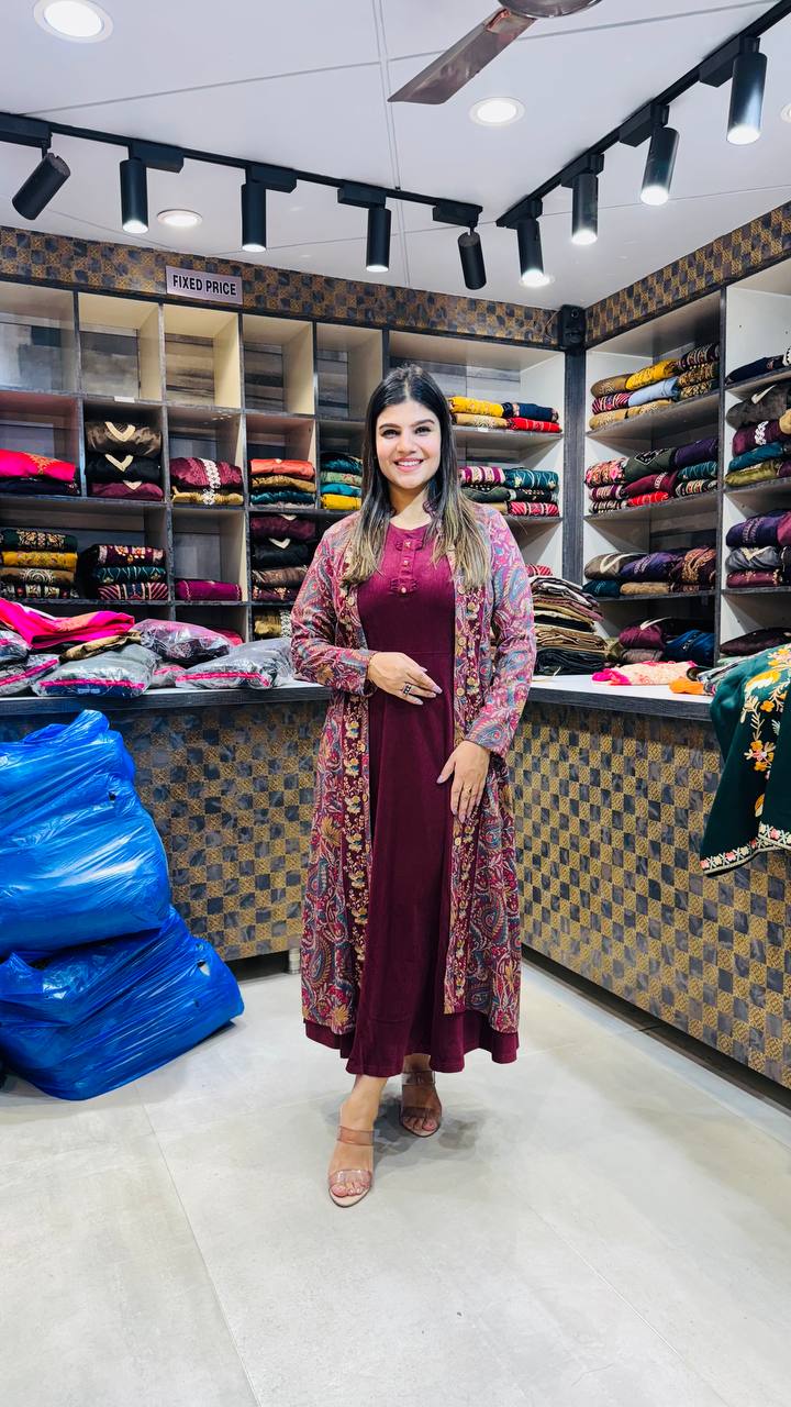 π¨ Colour: Deep Maroon with Multitone Printed Shrug