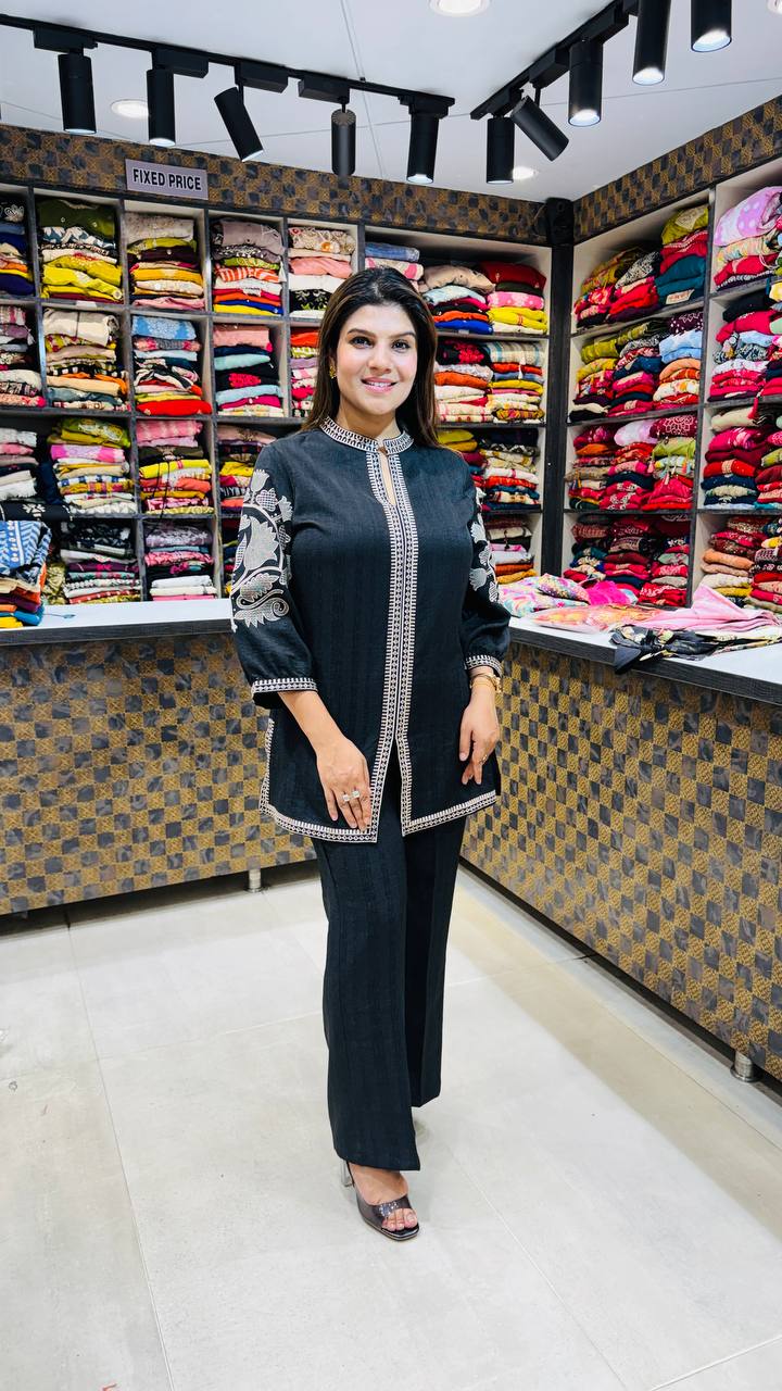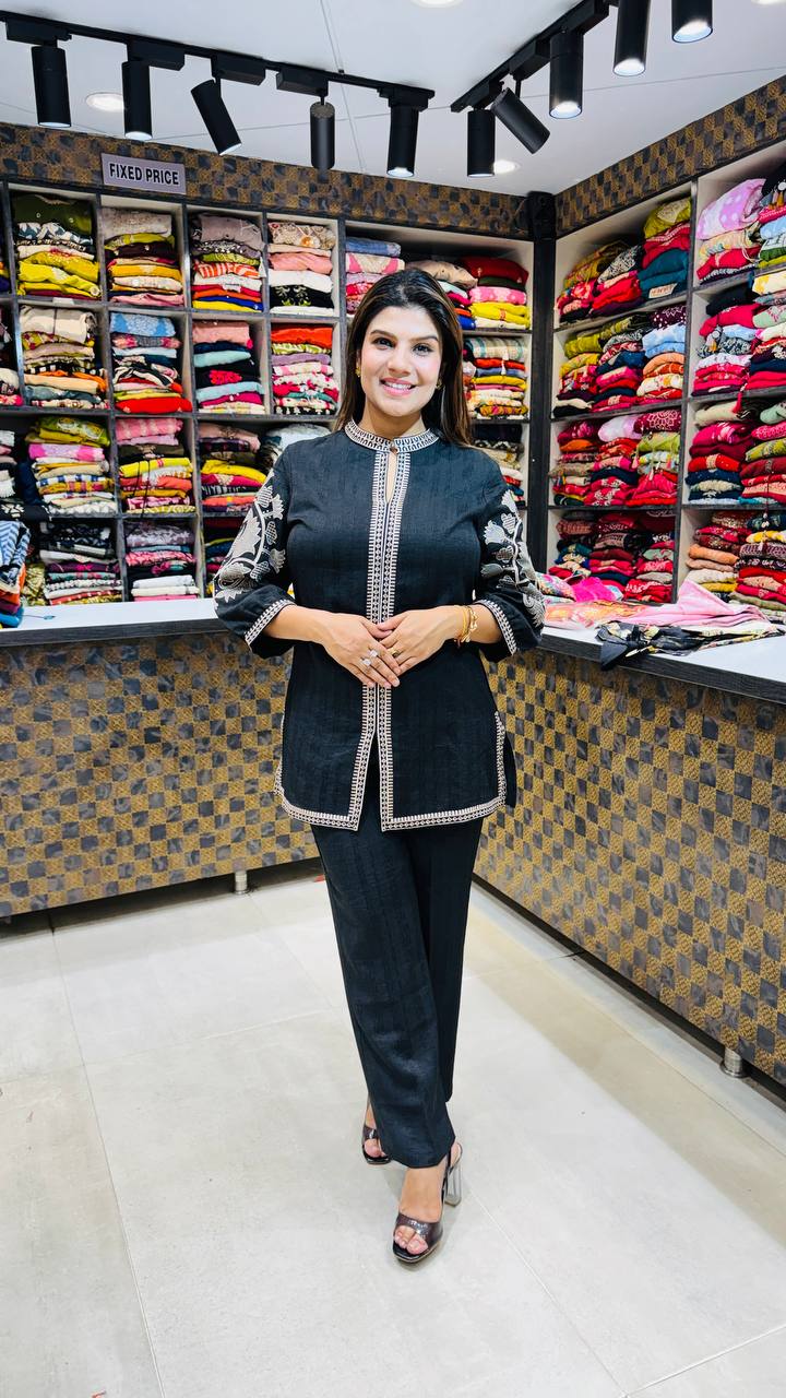 🎨 Colour: Black with Soft Beige Embroidery