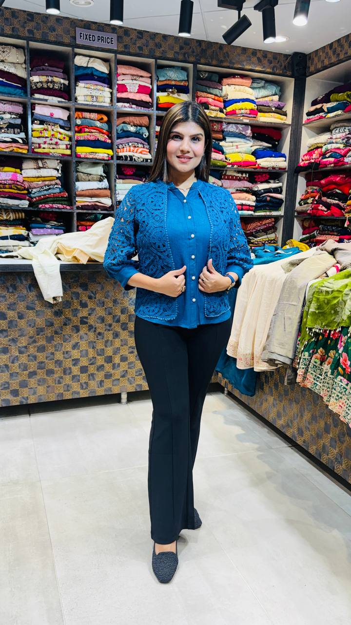 🧵 Design: Cutwork lace overlay with inner layer & front button detailing