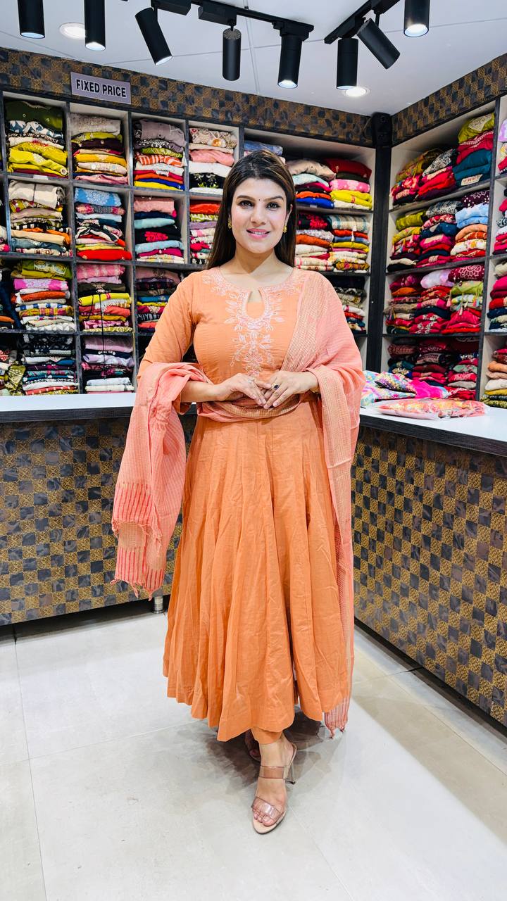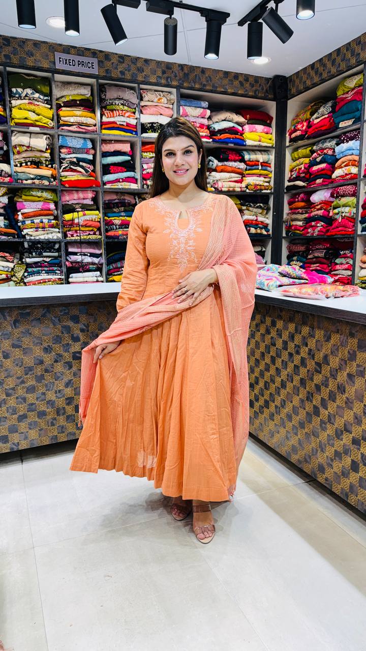 🧵 Design: Minimal Embroidered Neckline with Flowy Gathered Flair