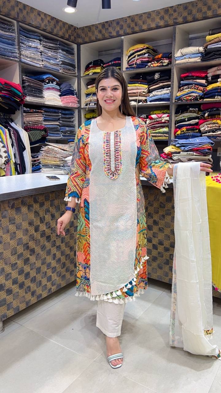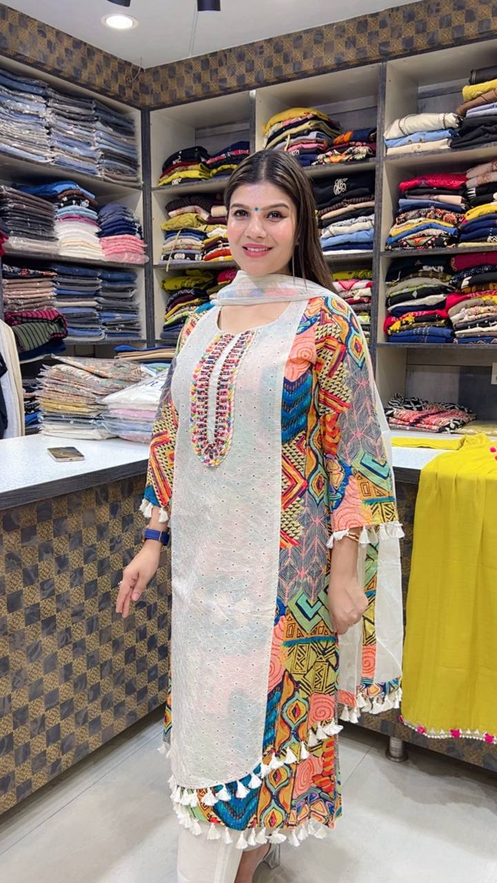 🧵 Design: Schiffli Work with Abstract & Ethnic Print Detailing