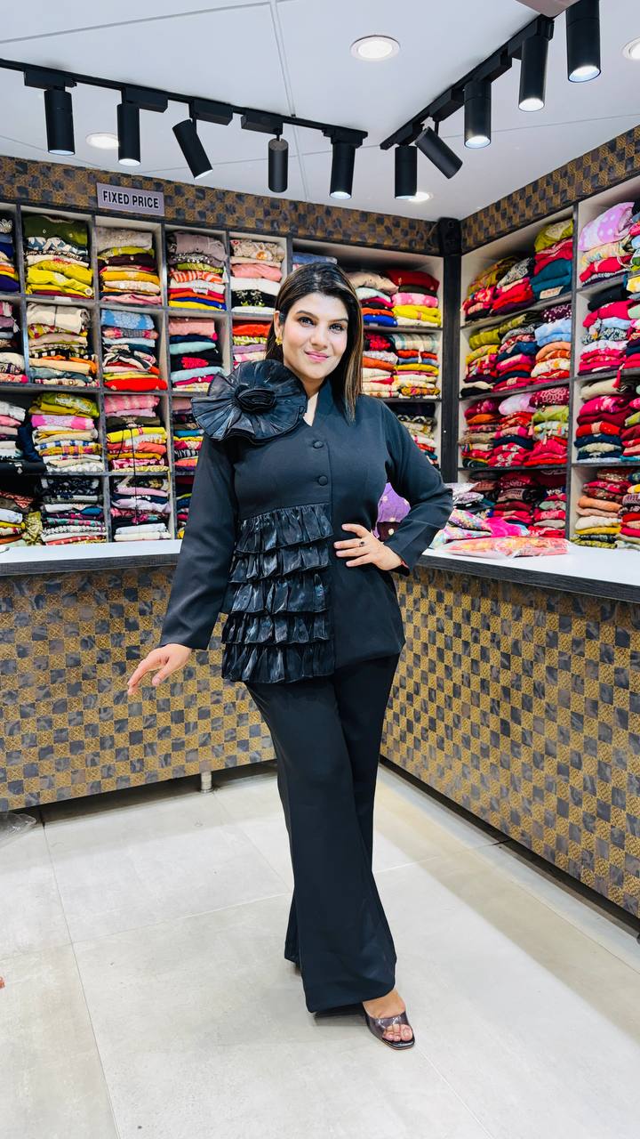 🧵 Design: Statement Ruffle Detailing with 3D Floral Accent