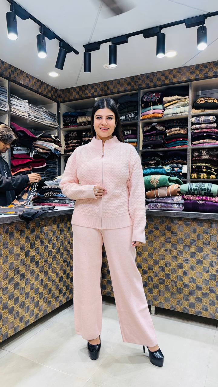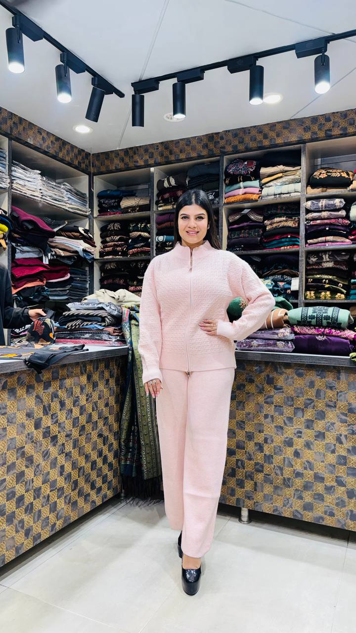 Roséline is a Premium Warm winter ensemble in a soft blush-rose pink tone, designed for clean, modern cold-weather styling. The outfit features a subtle quilted texture throughout, giving it a structured yet cozy appearance. The zip-front design keeps the look sleek and practical, while the minimal detailing allows the colour and texture to stand out.