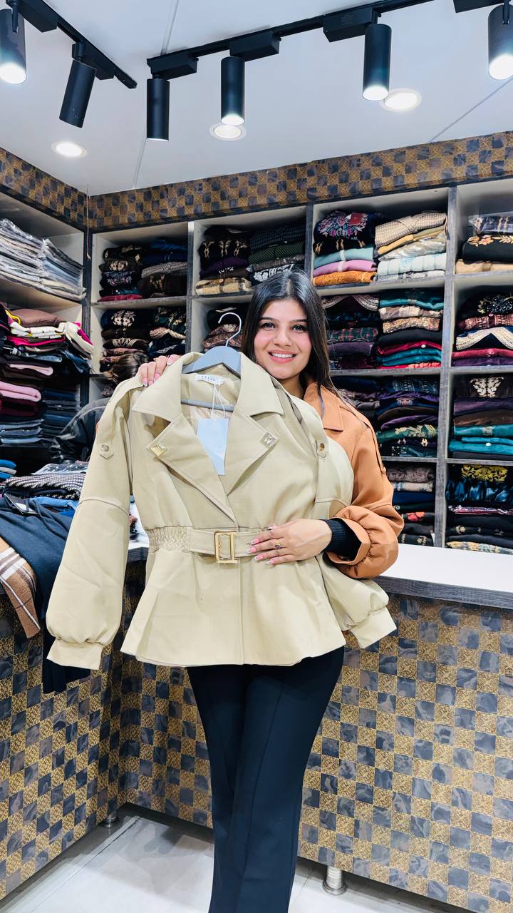 Sabeen is a Premium Warm Blazer in an elegant butter beige shade β timeless, minimal, and effortlessly chic. Tailored with a flattering cinched waist belt and structured shoulders, it blends modern confidence with subtle feminine curves. The lapel collar and gold-tone buckle detailing elevate its look, making it ideal for winter outings, brunches, or layered streetwear fashion. Crafted from a soft insulated fabric, it keeps you warm while maintaining a sharp silhouette β where comfort meets pure sophistication.