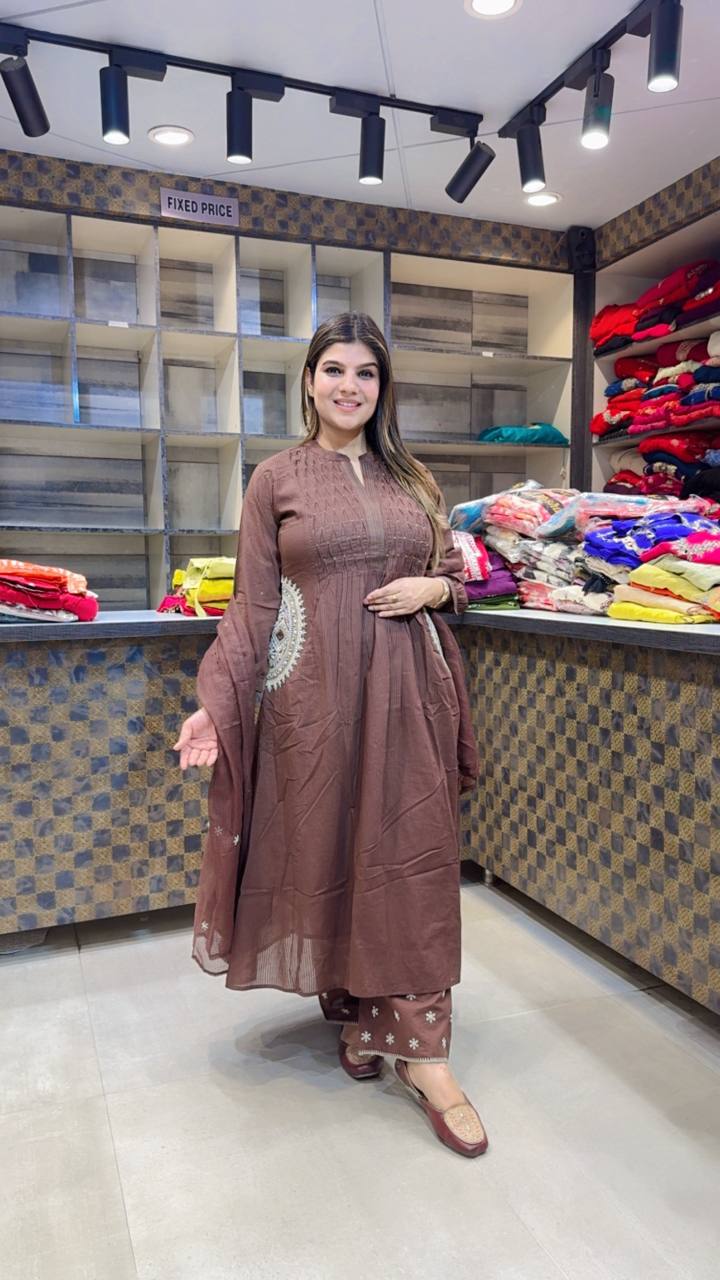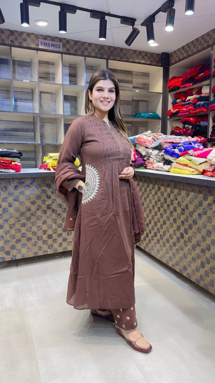 🎨 Colour: Warm Cocoa Brown with Soft Ivory Embroidery