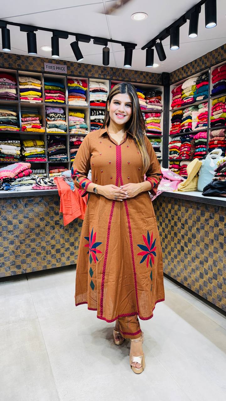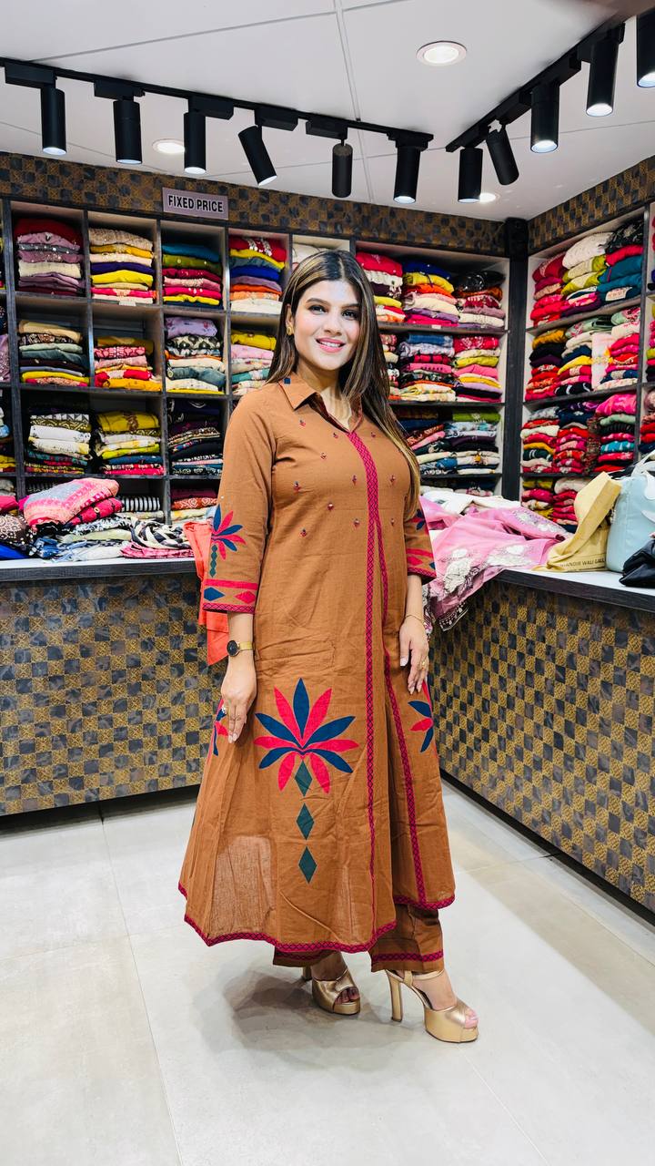 🧵 Design: Floral motifs with vertical panel detailing and contrast borders