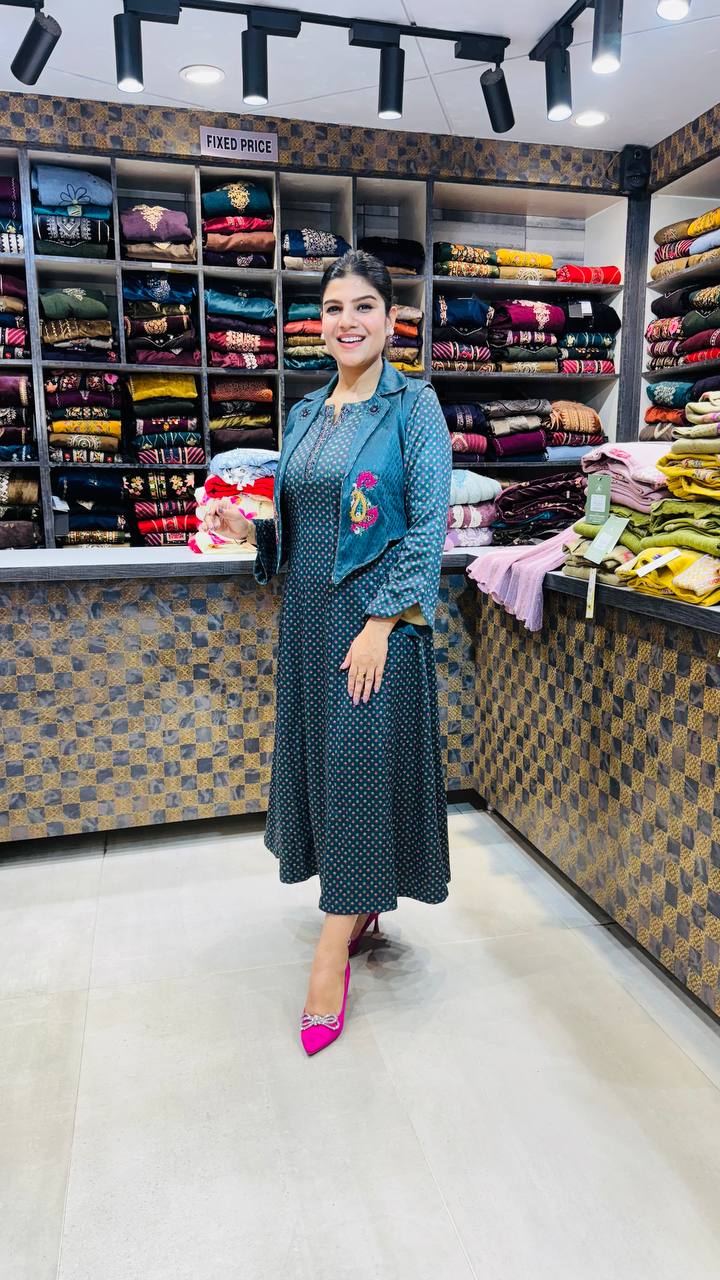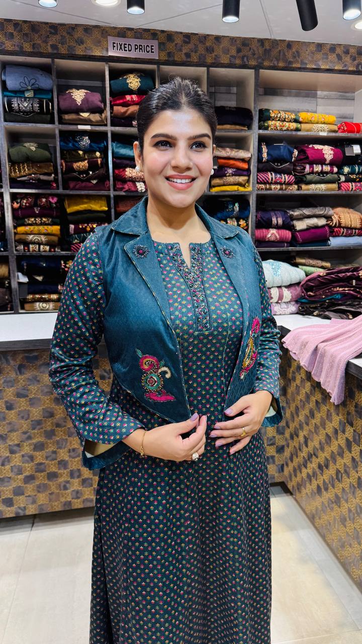 🎨 Colour: Deep Teal with Embroidered Velvet Jacket