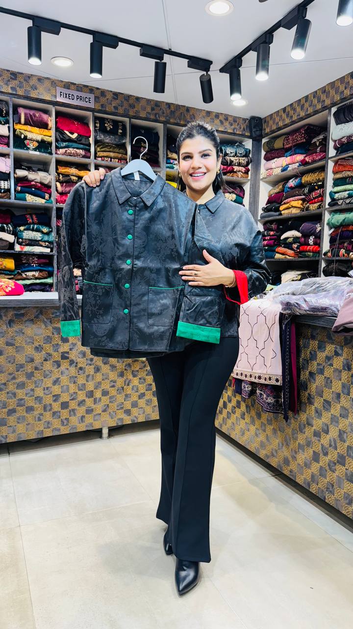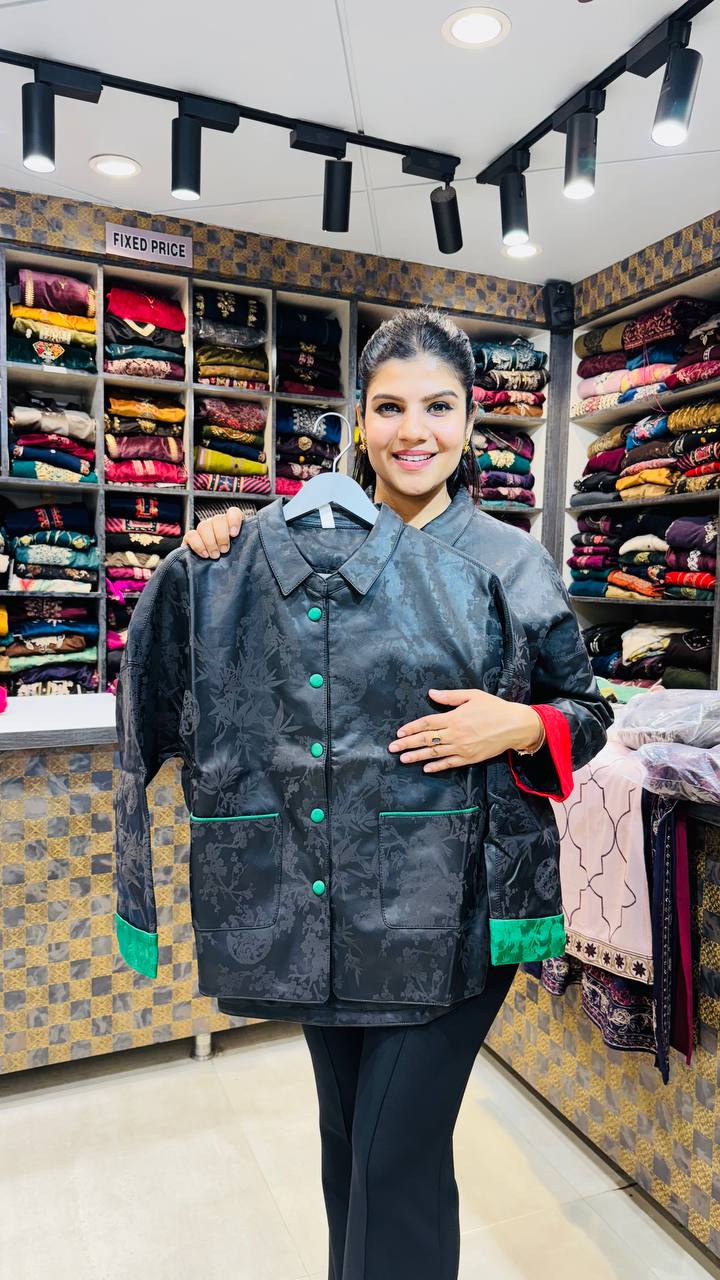 β¨ Design: Embossed Texture β’ Contrast Green Buttons & Cuffs β’ Front Pocket Detailing β’ Structured Fit