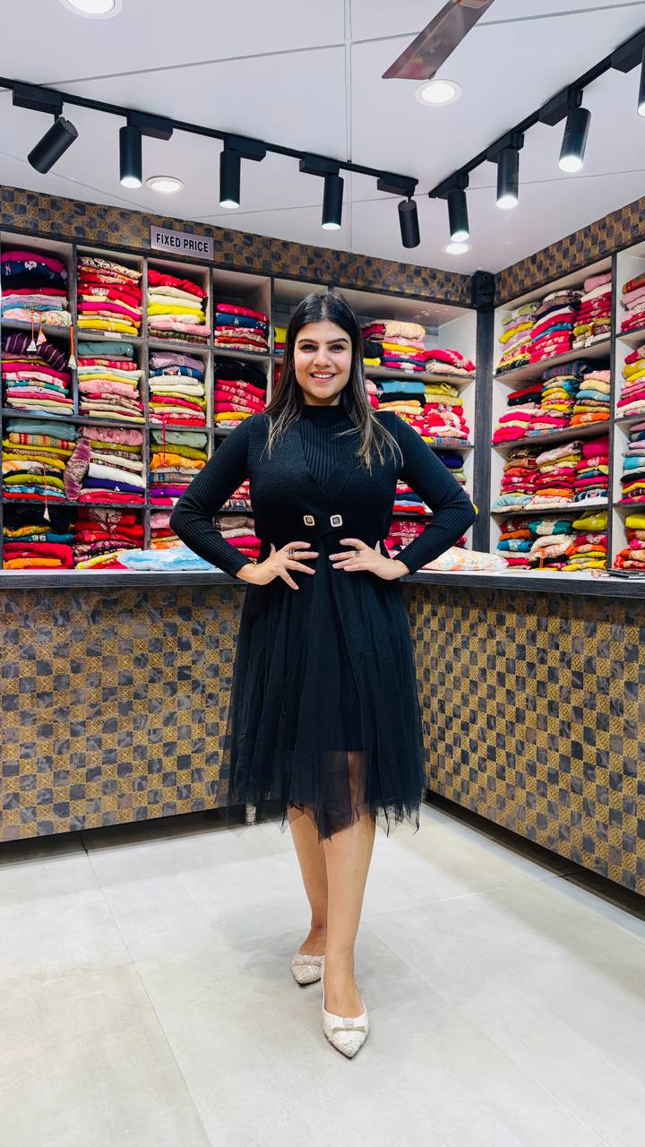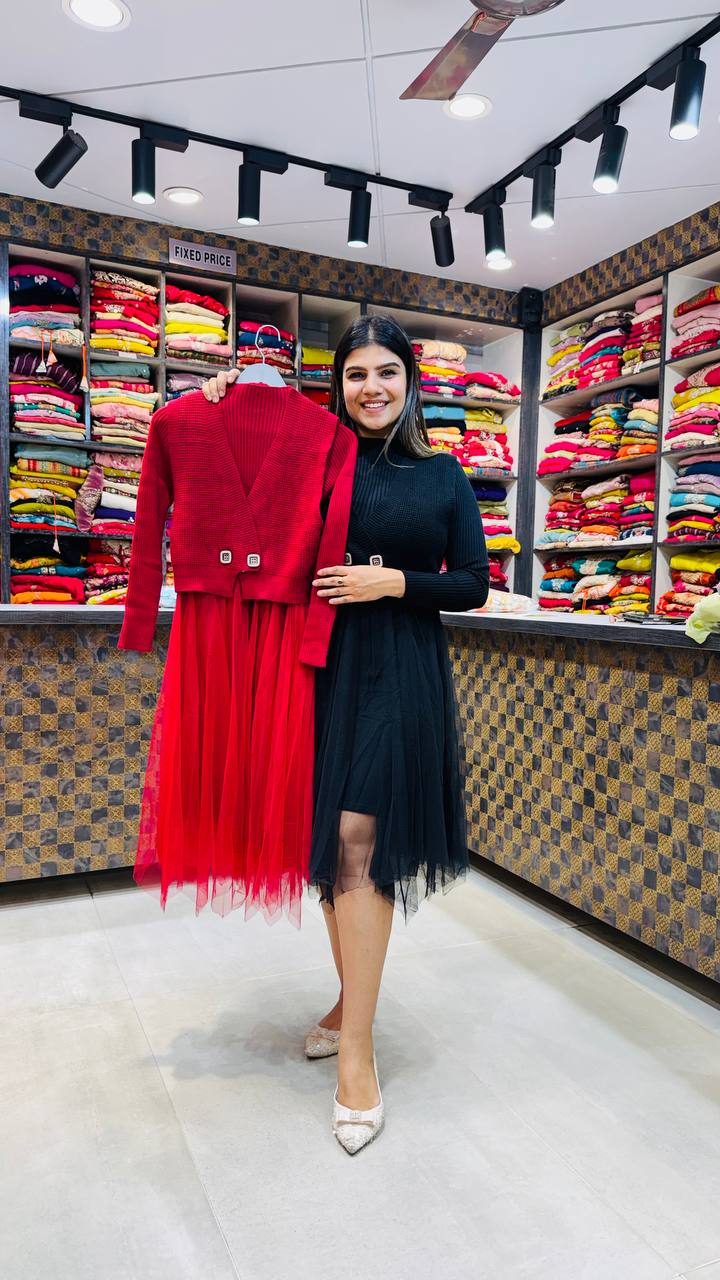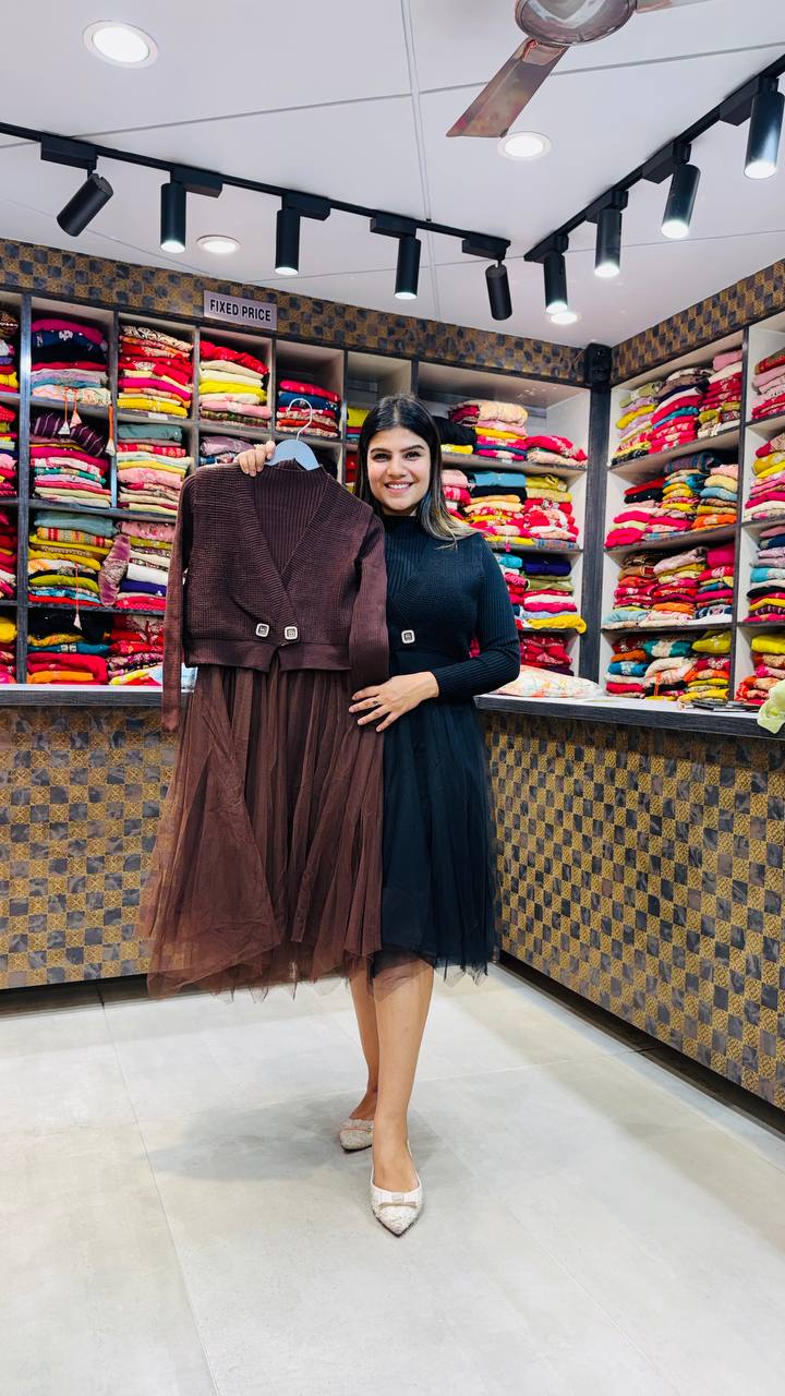 A stunning collection of premium knitted dresses, crafted from soft and warm fabric to keep you cozy yet chic this winter season. Each outfit features a ribbed knit upper with a belted waistline and a flared net skirt, blending comfort with elegance. Available in three captivating shades — Midnight Black, Crimson Red, and Chocolate Brown — every color radiates a unique winter charm. Whether it’s a brunch outing, festive gathering, or evening date, this ensemble strikes the perfect balance of grace, warmth, and modern sophistication.