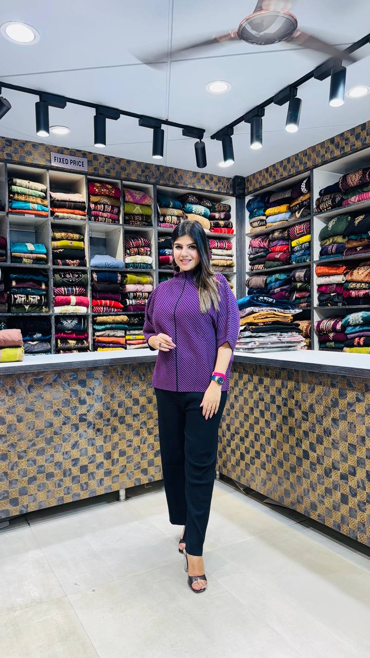 Zafira brings a perfect blend of modern elegance and winter comfort. The rich deep purple hue paired with fine diagonal knitted stripes gives this top a sleek, premium look. Crafted from soft & warm knitted fabric, it offers a cozy yet stylish fit with a clean front zip and relaxed sleeves β ideal for winter outings, office wear, or everyday chic styling.
