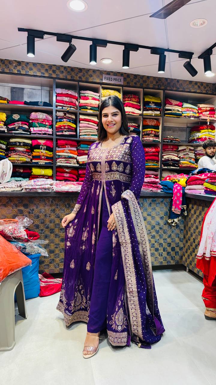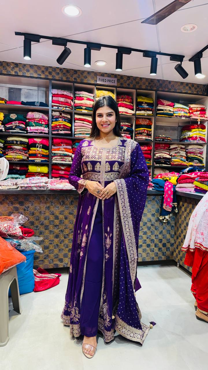 🎨 Colour: Royal Purple with golden embroidery